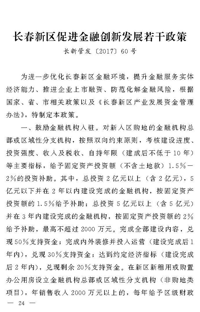 長春新區(qū)產業(yè)發(fā)展資金管理辦法