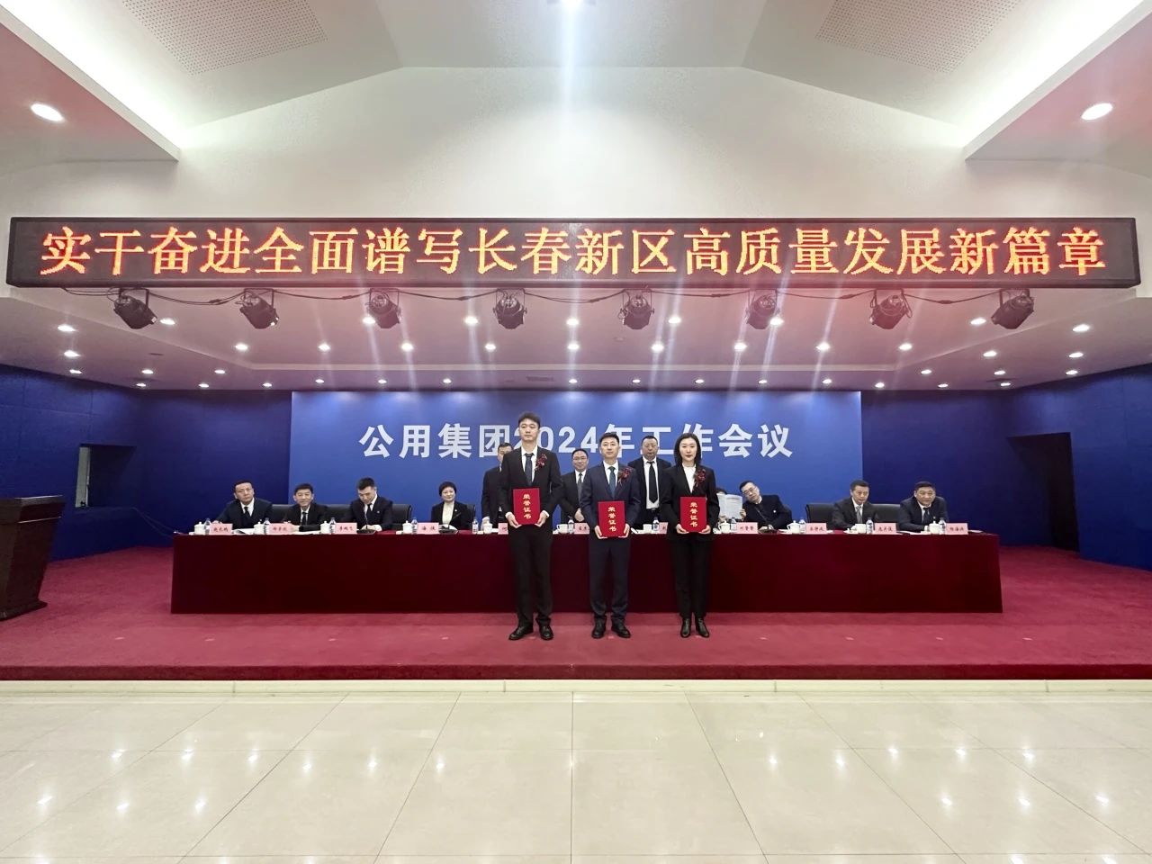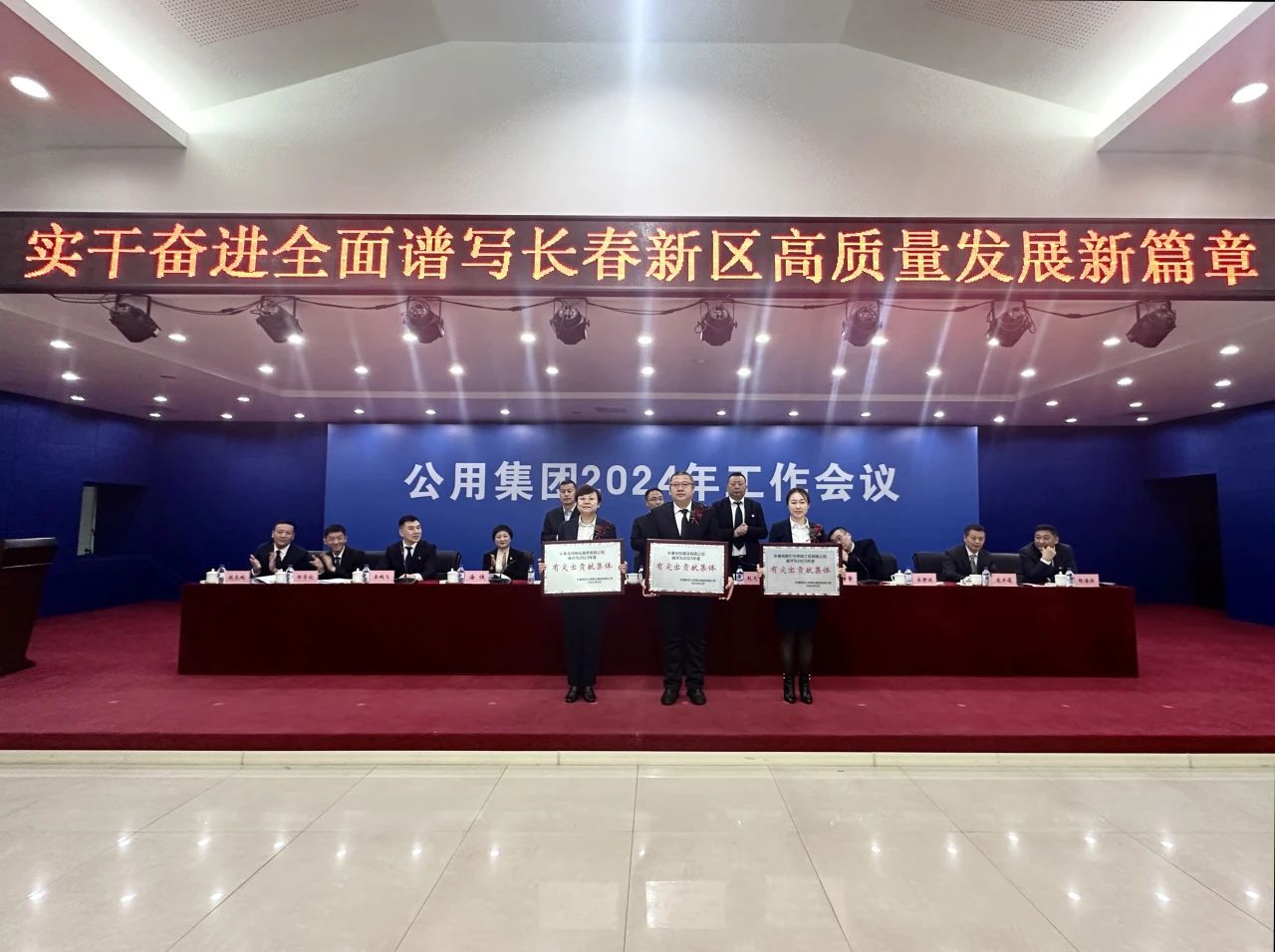 - 3月22日,長春新區(qū)公用事業(yè)集團(tuán)有限公司召開2024年工作會議,回顧總結(jié)2023年各項工作、表彰年度先進(jìn)集體和個人,深入貫徹新區(qū)和高新區(qū)工作會議精神,部署安排2024年重點任務(wù),為集團(tuán)事業(yè)高質(zhì)量發(fā)展謀篇布局。集團(tuán)黨委副書記李鵬飛主持會議并宣讀表彰決定,集團(tuán)黨委副書記、總經(jīng)理海俠作工作報告,集團(tuán)黨委書記、董事長趙光中作會議講話。高新區(qū)管委會副主任翟彥波、財政局局長劉馨馨和副局長宋靜波,新區(qū)國資局副局長何宏到會指導(dǎo)。